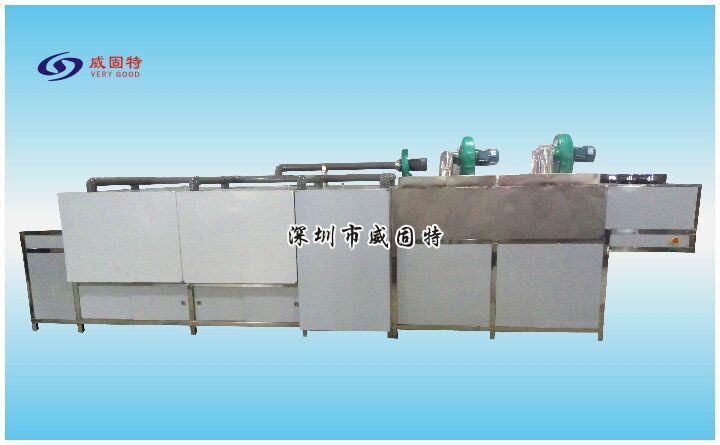 本裝置是一套用于NCS,NF轉向節與車輪支架除油、鐵銷的清洗裝置。配有超聲波清洗裝置,循環過濾裝置,噴淋系統,高壓風刀切水系統,熱風烘干系統,防銹系統自動運行的履帶鏈傳輸裝置,電腦自動控制裝置。工件經規定程序清洗后表面無污漬,無水痕。
