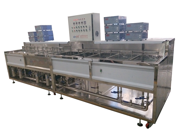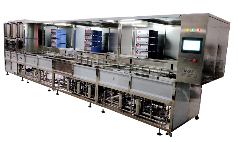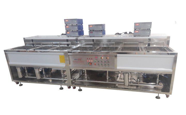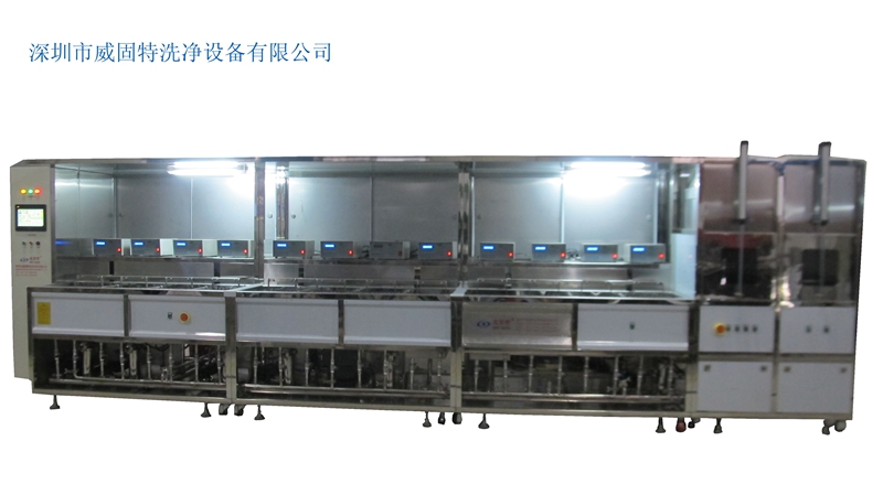 深圳威固特VGT-1509FT角反射器光學(xué)超聲波清洗機(jī)設(shè)備共有15個(gè)功能槽,配置有拋動(dòng)系統(tǒng)、循環(huán)過濾系統(tǒng)、自動(dòng)恒溫系統(tǒng)、超聲波清洗系統(tǒng)、定時(shí)系統(tǒng)、框架系統(tǒng)、CO2滅火系統(tǒng)等。設(shè)備采用環(huán)保型水溶劑洗滌、純水漂洗,為環(huán)保型清洗系統(tǒng)。