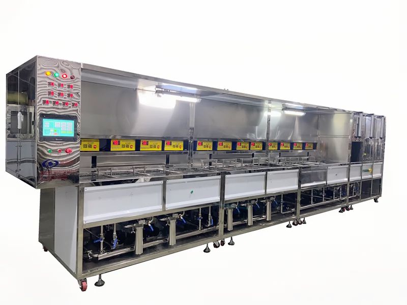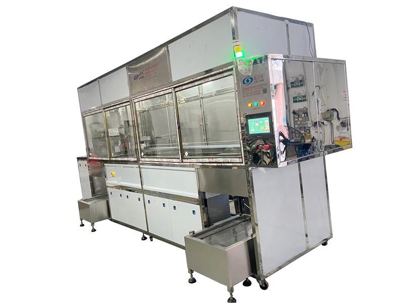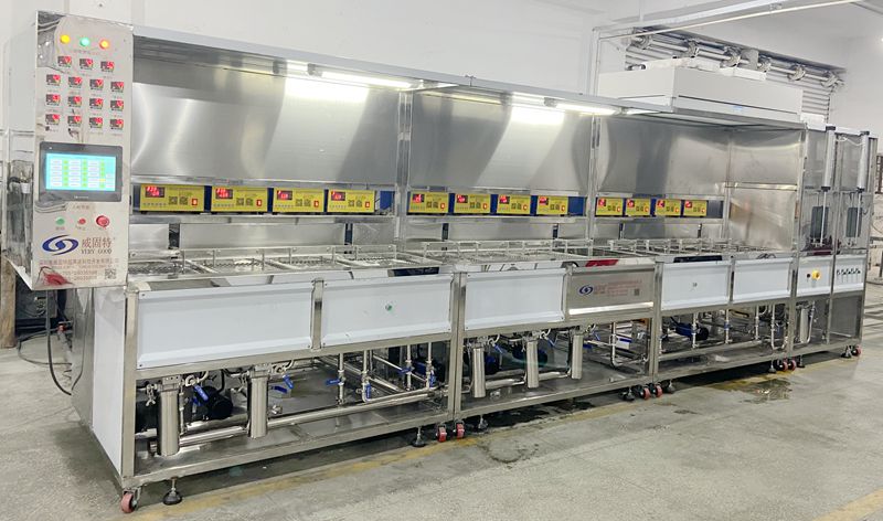 威固特VGT-1309FS激光保護鏡片超聲波清洗機設備采用13工位槽體布局,涵蓋清洗、漂洗、慢拉脫水及離心甩干全流程。模塊化結構支持根據工藝需求自由拆分組合,例如針對激光鏡片的鍍膜前清洗,可配置水基清洗劑槽與高純水漂洗槽,有效剝離粉塵、拋光粉及有機殘留物。