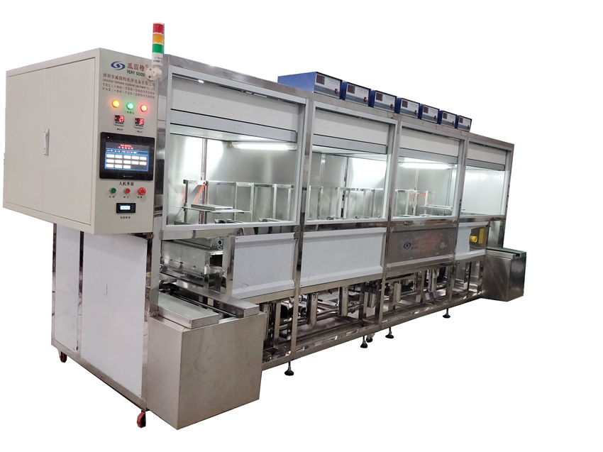 由超聲波洗凈槽、超聲波漂洗槽、慢拉干燥槽、過濾循環(huán)系統(tǒng)、電氣控制系統(tǒng)及純水供應(yīng)系統(tǒng)等組成。