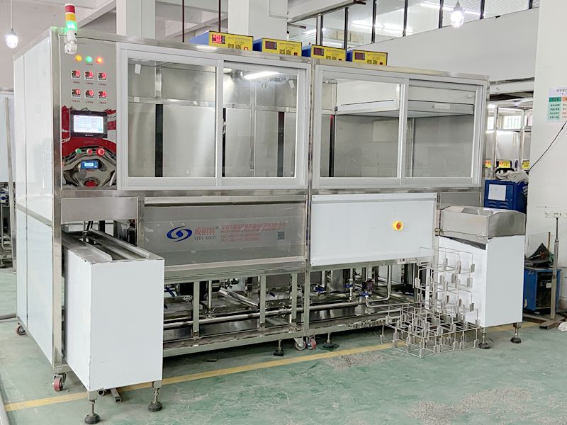 自動(dòng)上料→1超聲水劑洗(拋動(dòng))28K→2超聲純水漂洗(拋動(dòng))40K→超聲純水漂洗(拋動(dòng))40K→自動(dòng)下料。
